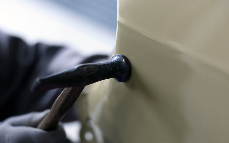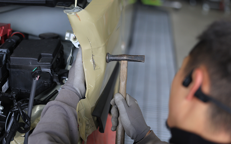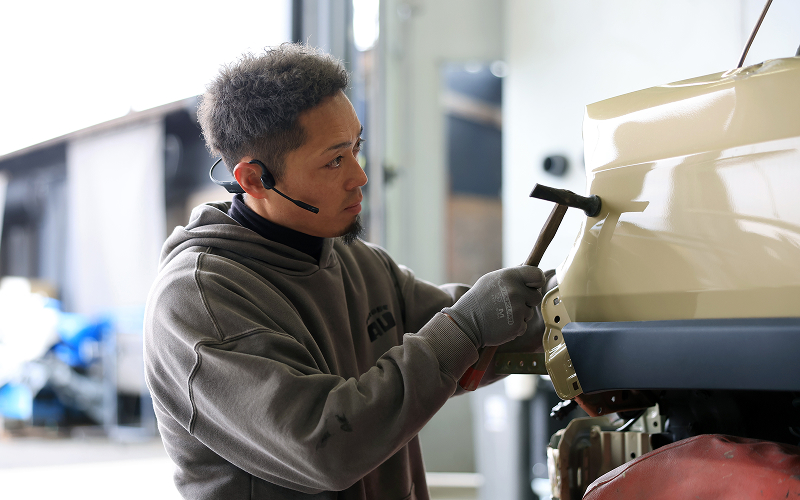 パテに頼りすぎず、鉄板そのものを叩き出す精密な鈑金技術。
